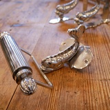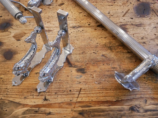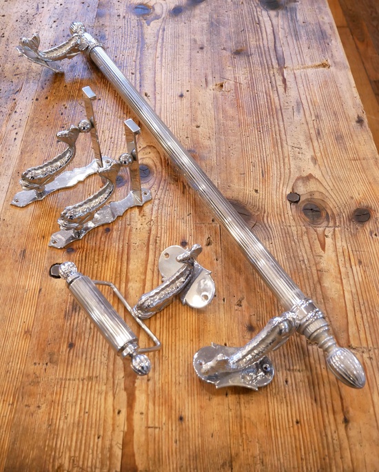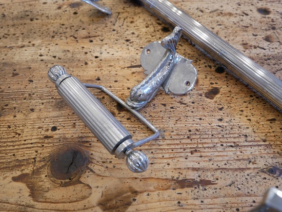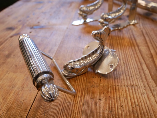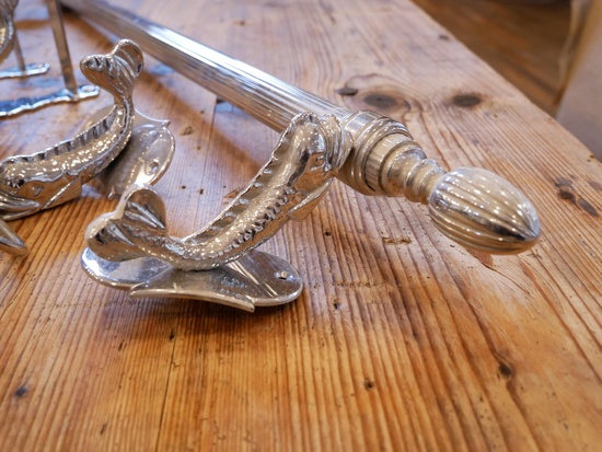 Verchromte Badaccessoirs der 1970er Jahre im Hollywood Regency-Stil mit Delphinen als Dekor.