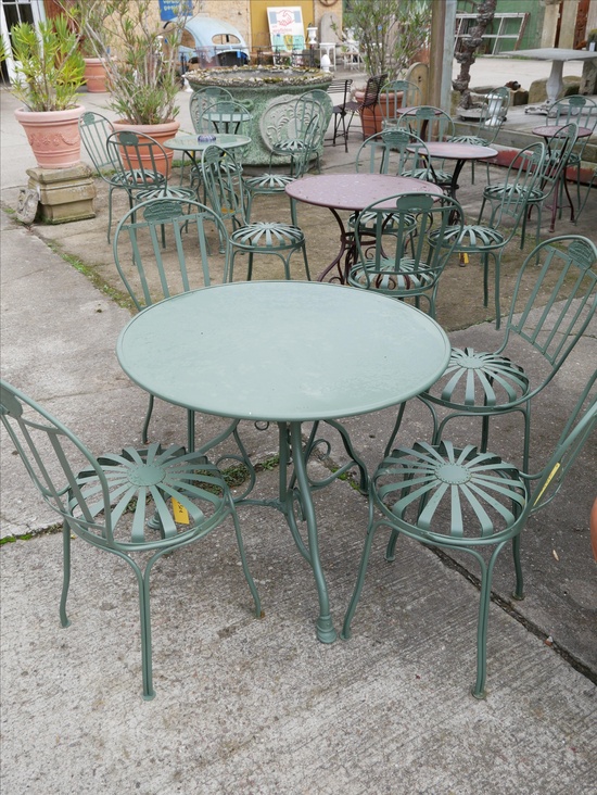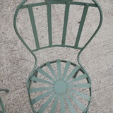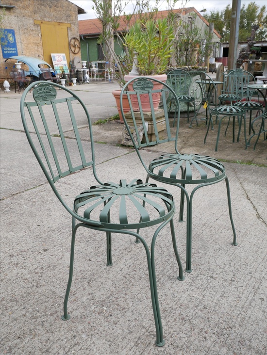 Delicately crafted garden chair made of solid wrought iron in olive green. The ornamental seat and curved backrest make it a stylish highlight for any outdoor space. Weather-resistant and sturdy – perfect for garden, patio, or conservatory.